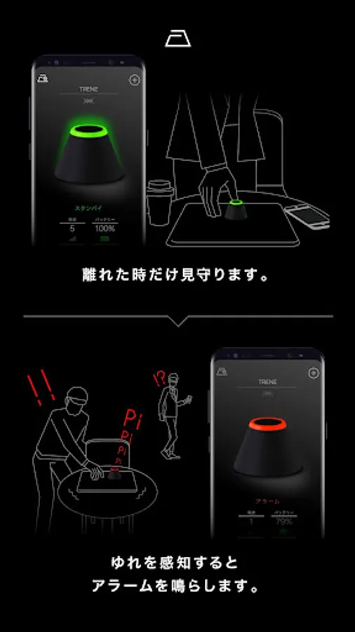 2. When you are away from the seat with a smart phone, "Torene" will start the watch of luggage on your behalf.
