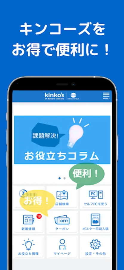 The Kinko's Japan Official App is an official application that allows customers to use Kinko's more conveniently and profitably.