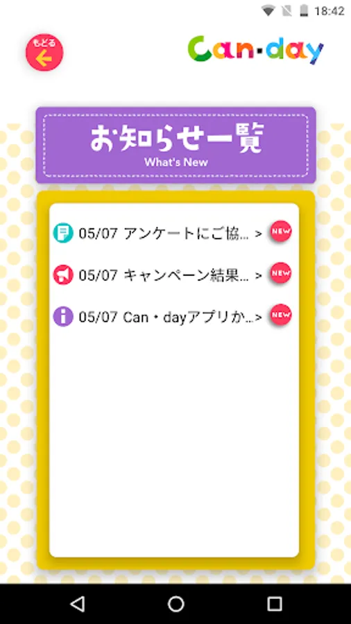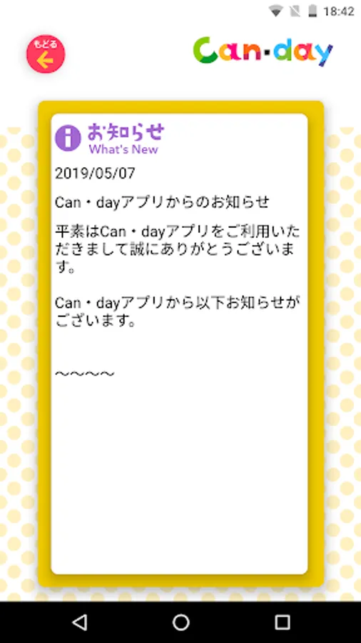 ◆ Information list ・ ・ ・ We will inform you about the "Can / day" app.