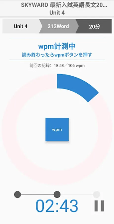 "TIME-PRACTICE" can be used not only as a timer to measure study (answer) time, but also to calculate wpm automatically. (Calculate not only English but also how many characters you could read in a minute.)