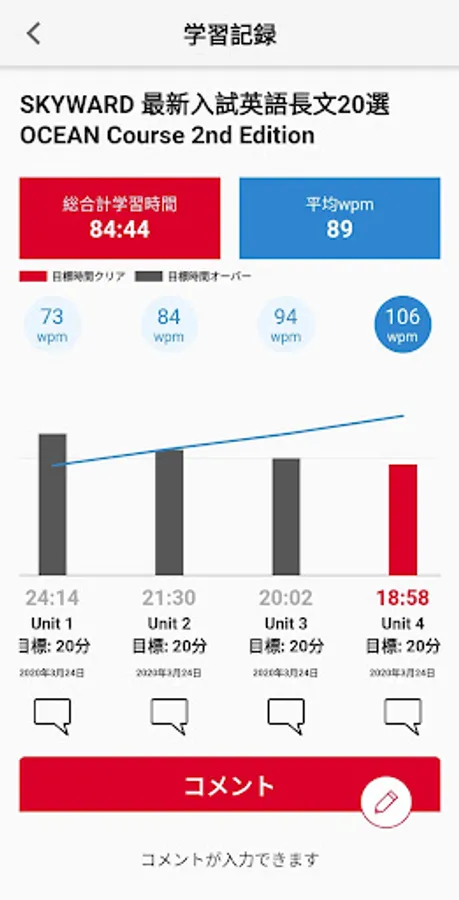 In addition to the basic timer function, `` TIME-PRACTICE '' has a function that automatically records the learning result each time and displays the result not only as a numerical value but also as a graph, so you can visualize the accumulation of daily learning Can also be confirmed.