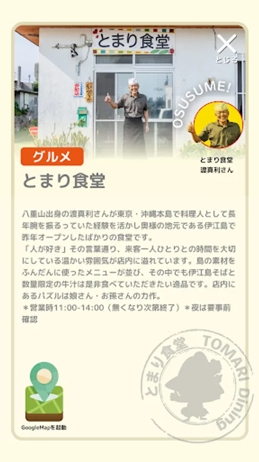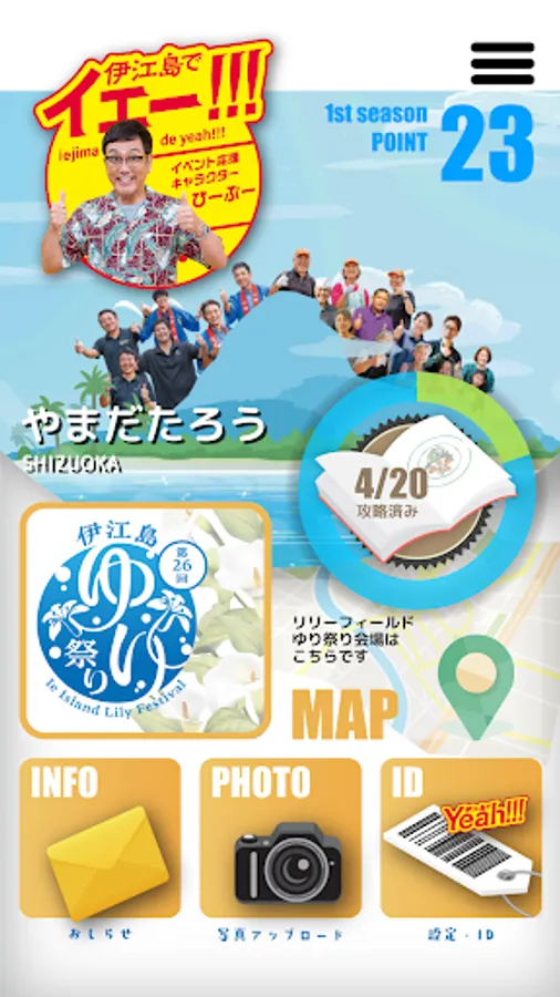"Yeah! There are lots of wonderful spots that will make you want to go. We have created an app that makes Iejima even more fun! This is a stamp rally app that covers 20 recommended spots on Ie Island. ! An Iejima photo contest is also held on the app. There are many photogenic spots such as the beautiful sea and the mountain symbol “Tacchu” with its characteristic silhouette! In such Ie Island, "Yeah! Please take a picture and upload it. Participation is free. Please be considerate of traffic safety before enjoying.