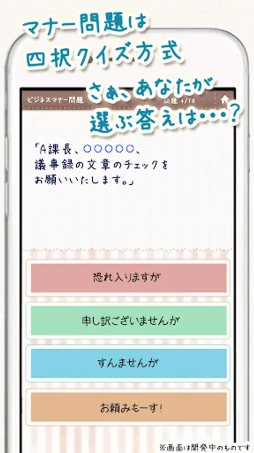ゲーム、診断感覚で楽しくマナーを学びましょう。