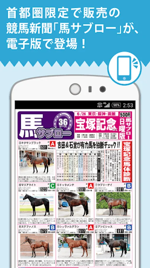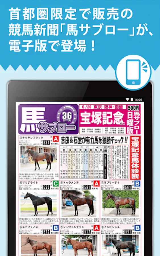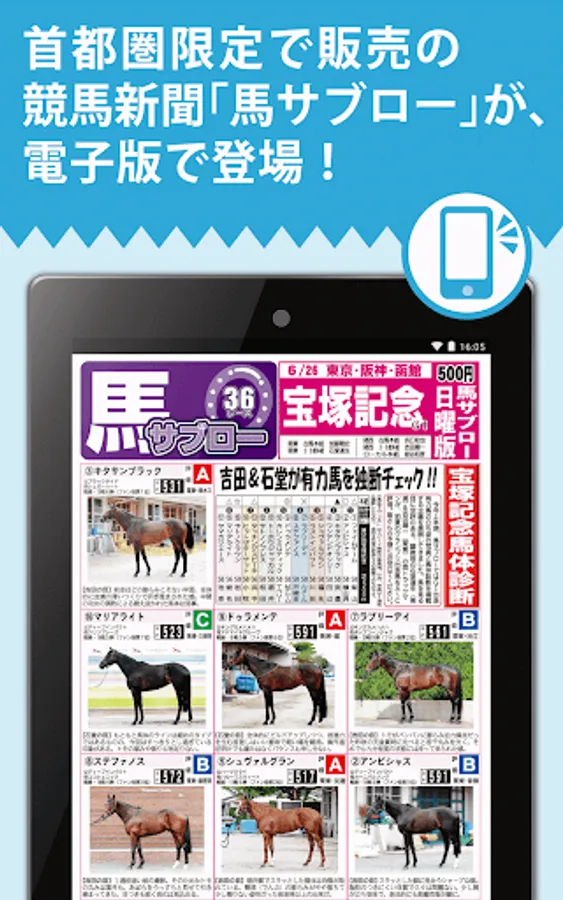 The popular horse racing magazine "Uma Saburo", which is only available in the Tokyo metropolitan area, is now available as an electronic app that can be purchased anytime, anywhere!