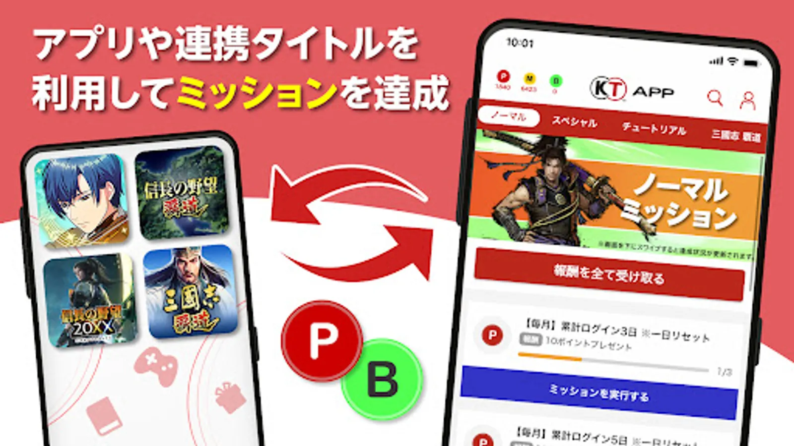By reading news on the "Koei Tecmo App" and playing linked apps, you can complete "missions" and earn rewards.