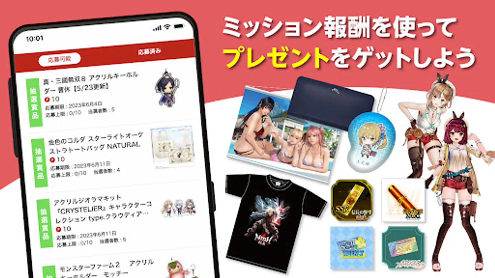 ・You can win popular Koei Tecmo goods and reprinted goods by lottery in "Present"! The lineup is updated at any time!