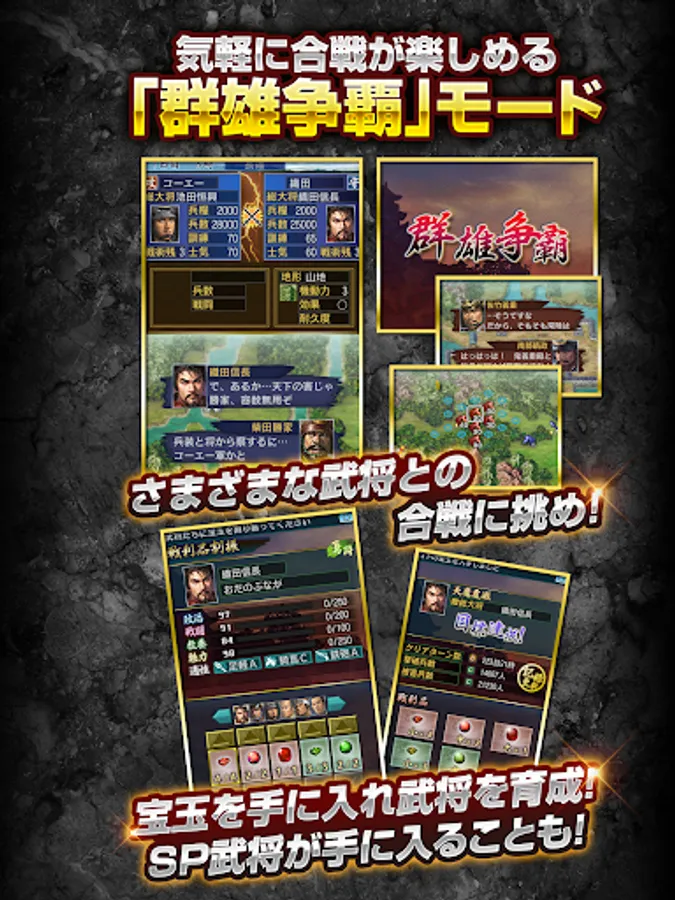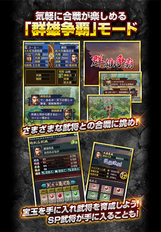 Equipped with a short scenario format "Gunyu Conquest" mode that allows you to enjoy only battles in a short time!