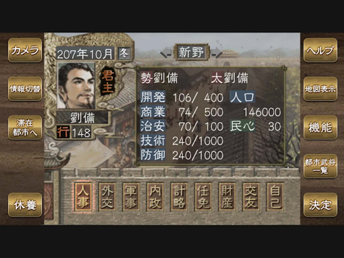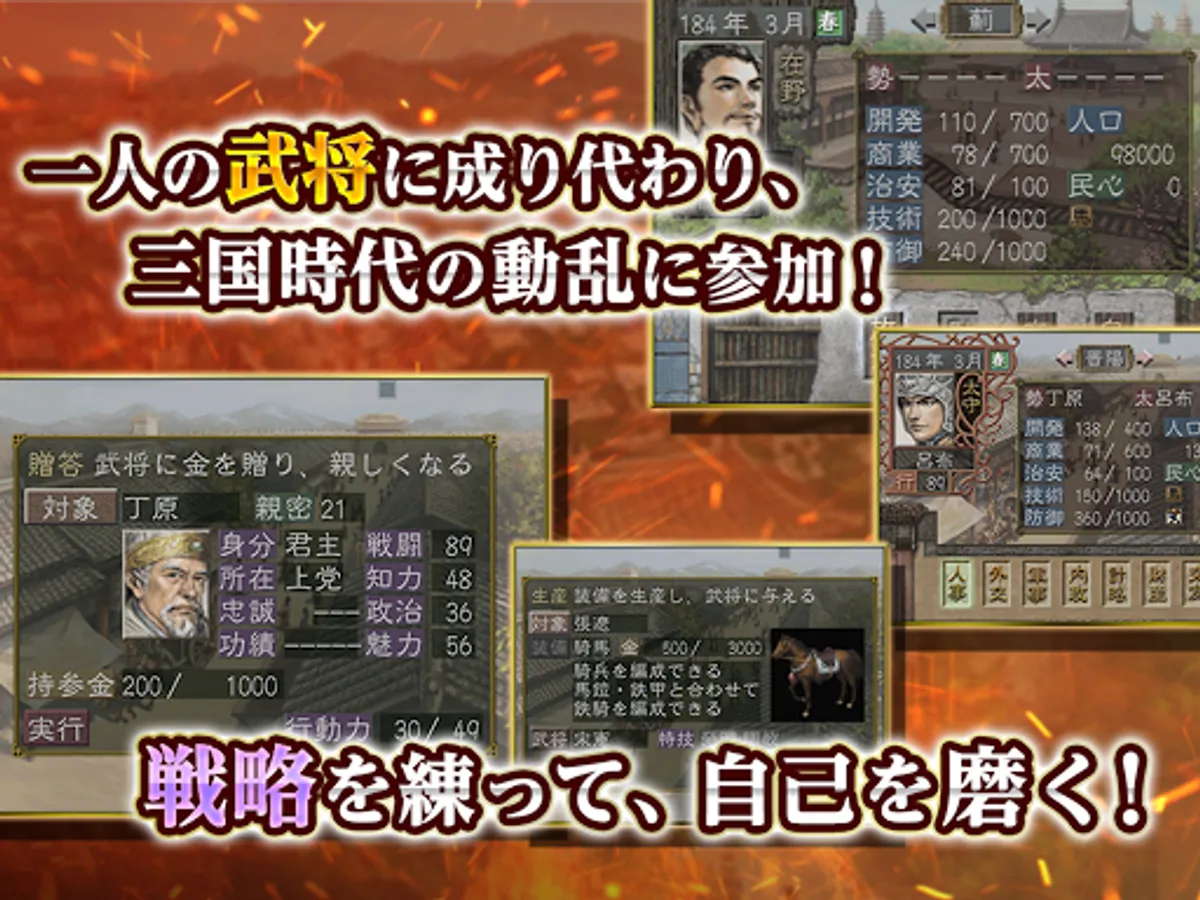 Set in the 2nd to 3rd century China's Wei, Wu, and Shu Three Kingdoms period, this is a historical simulation game in which you become one of the appearing military commanders and aim to unify China.