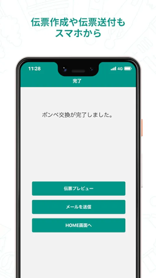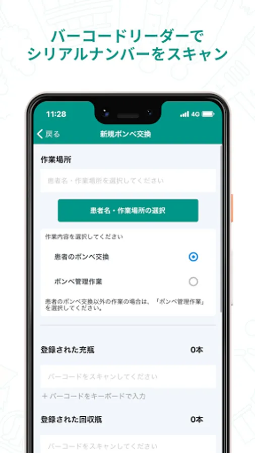 You can complete the work that was previously exchanged with paper slips with your smartphone. It is possible to automatically create operation management slips for delivery and collection of oxygen cylinders to patients at home, and send slips by e-mail. The cylinder serial number can also be read quickly using a barcode reader.