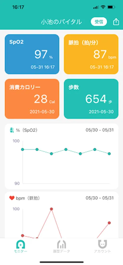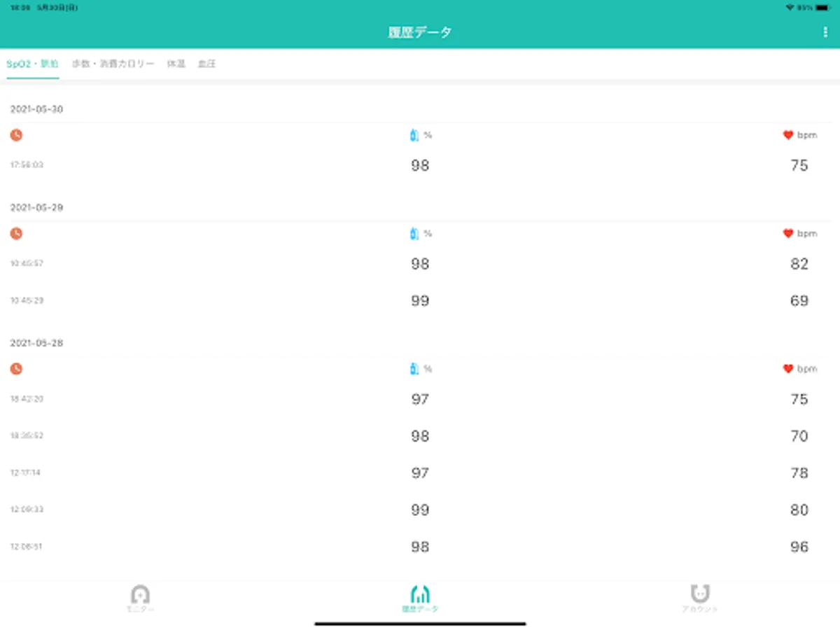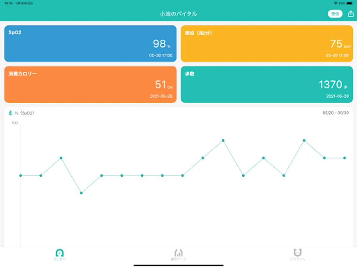In addition to SpO2 (blood oxygen saturation), PR (pulse), number of steps, calories burned, blood pressure, body temperature, you can record your daily physical condition along with comments.