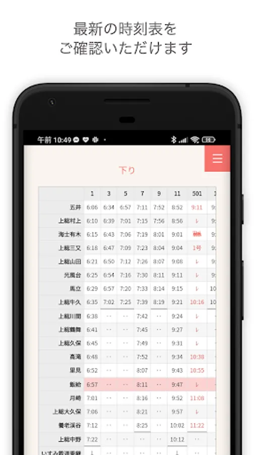 Enjoy the train more comfortably and more happily with the "Kominato Railway App".
