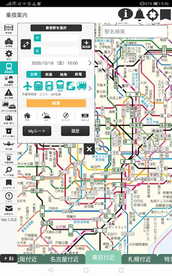 [Transit guidance function supports all over the country] Not only in the metropolitan area, but also for routes nationwide. You can search by specifying a station from a nationwide route map, which is convenient for long-distance business and leisure.