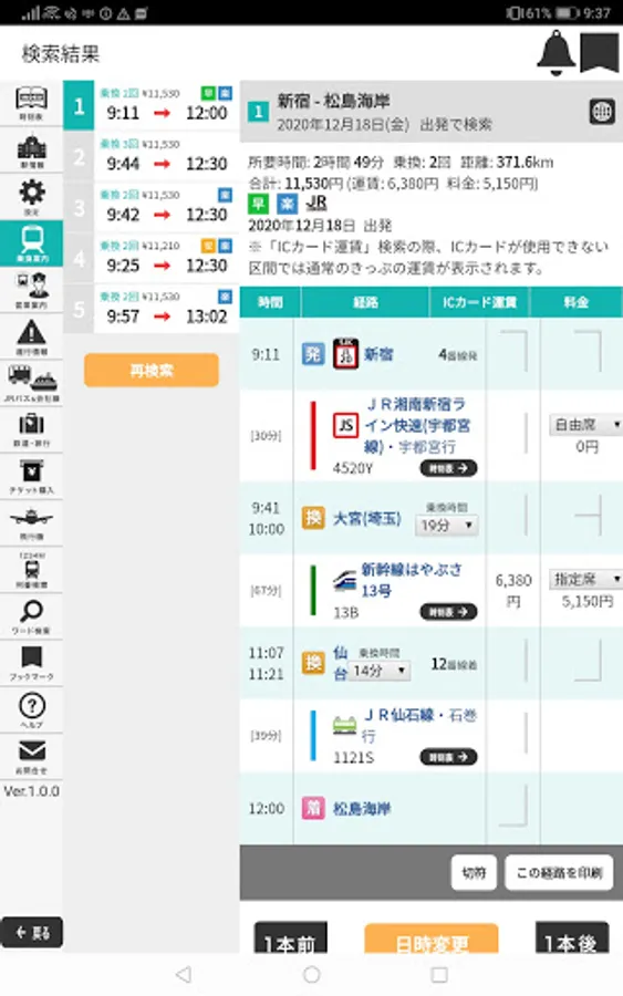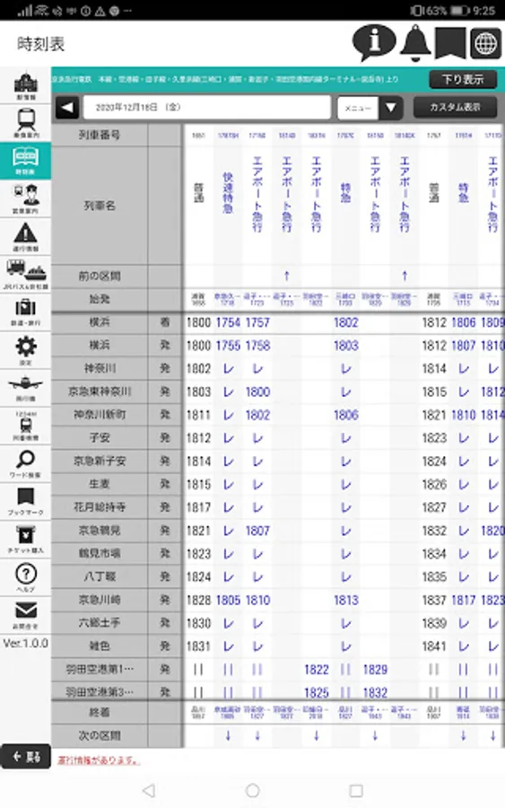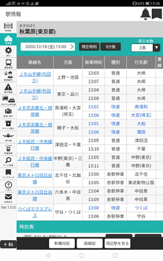 You can read the timetable like a magazine, such as the vertical display that is familiar with paper timetables. Since the number and time of each train, including special trains, are displayed in a list, it is convenient for checking.