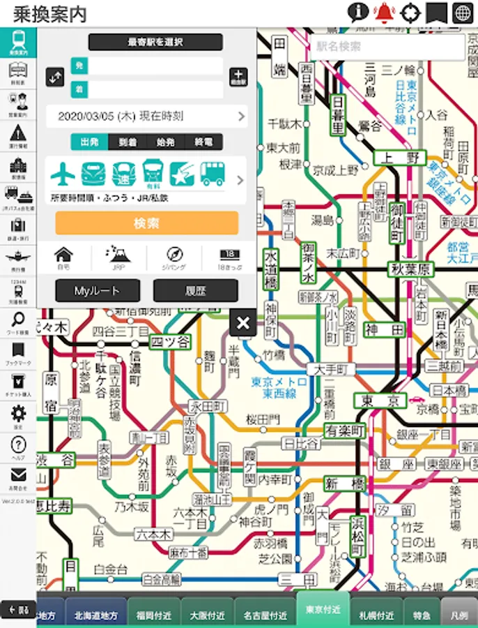 [Index function] You can quickly display station information and vertical timetables by tapping station names, route names, and airport names on the screen.