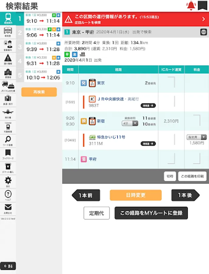[Link function] Vertical timetables, train information, and station information can be displayed from the transfer guidance search results.