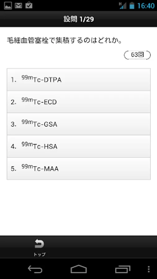 Note) end in the middle of the selected item (other item movement, in the case of movement, etc.) on the top page, the percentage of correct answers will not be calculated. Moreover, since the end is also a problem that has been selected to terminate the application itself on the way, (there is no one save function) Please note.