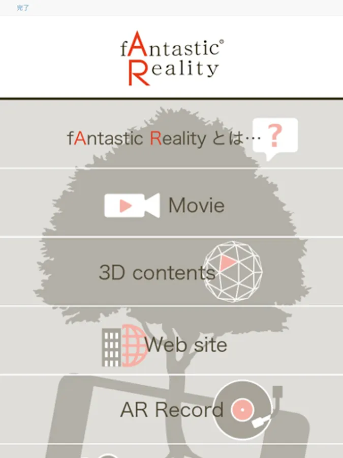 "F Antastic Reality" is an application that can display various digital contents in a real landscape through a camera.