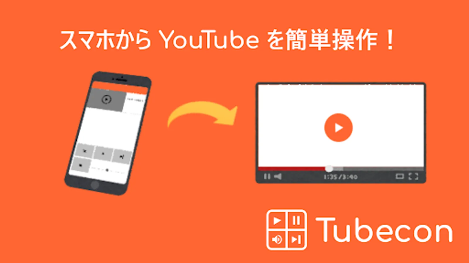 You're working on something else and can't keep your hands busy, or you don't want to move from your bed because you're playing it to fall asleep. With Tubecon, your phone becomes a remote control and you can control it from a distance.