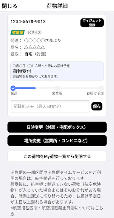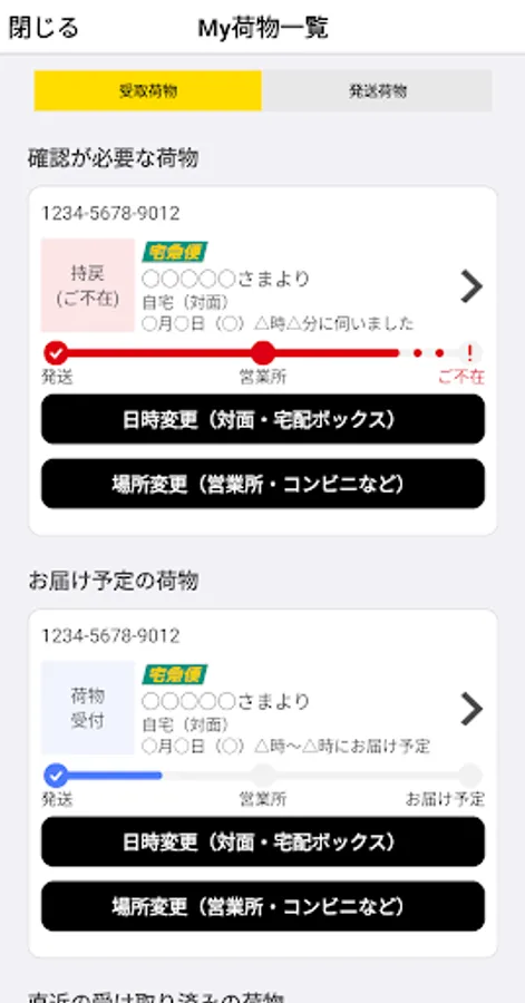 Display various notifications related to delivery and notifications from Yamato Transport in a list