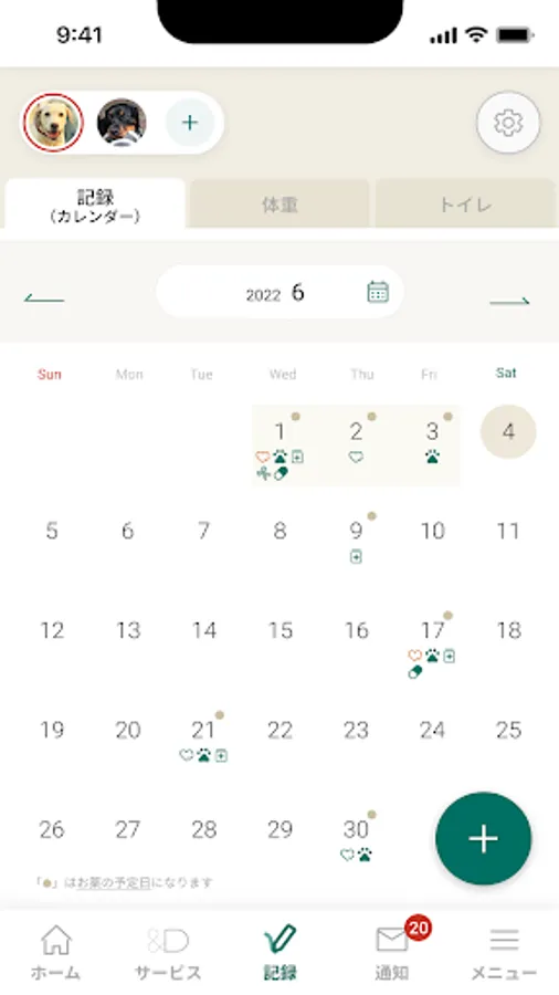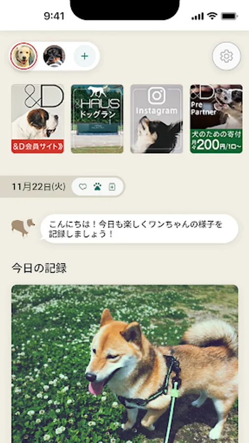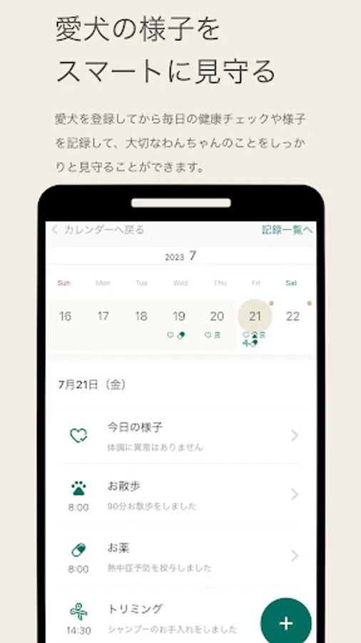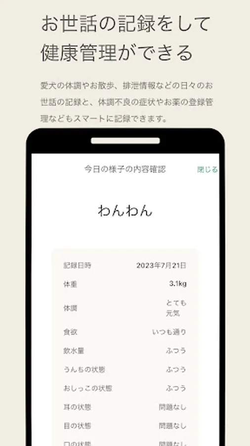 In addition to checking your dog's daily physical condition, you can also manage medication administration and record hospital visits.