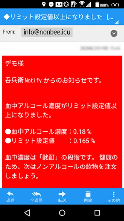 また、その他のお知らせの種類として、「終電時間のお知らせ」、「血中アルコール濃度リミットのお知らせ」があります。「終電時間のお知らせ」では、終電の時間を登録しておくことで、約30分前にお知らせをお送りします。「血中アルコール濃度リミットのお知らせ」は、アルコールの濃度がリミットとして設定した値に達した場合にお知らせをお送りし、そのあとの飲物の追加をできないようにしてリミットに達したことをより分かりやすくしています。
