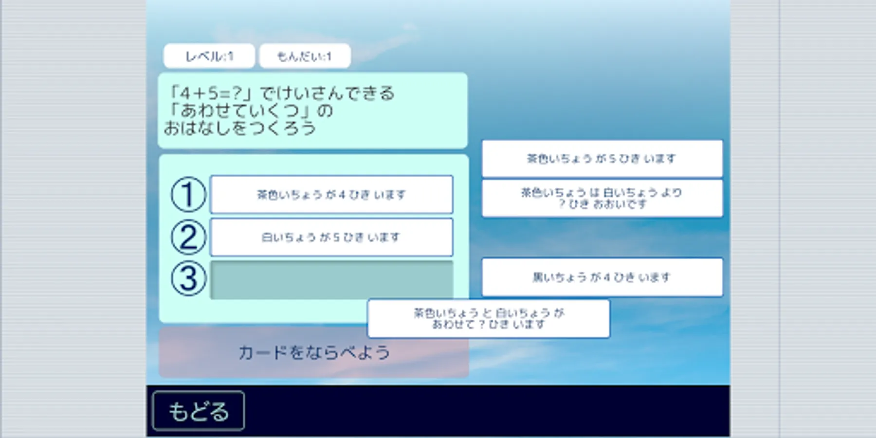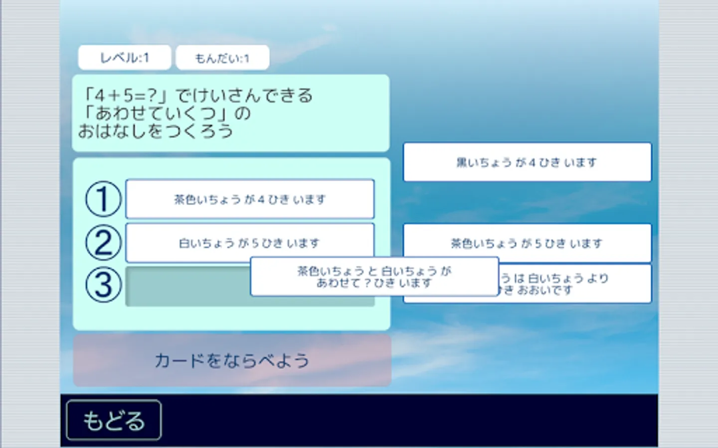 ・カードを組み合わせるだけで簡単に問題作りの学習が行えます