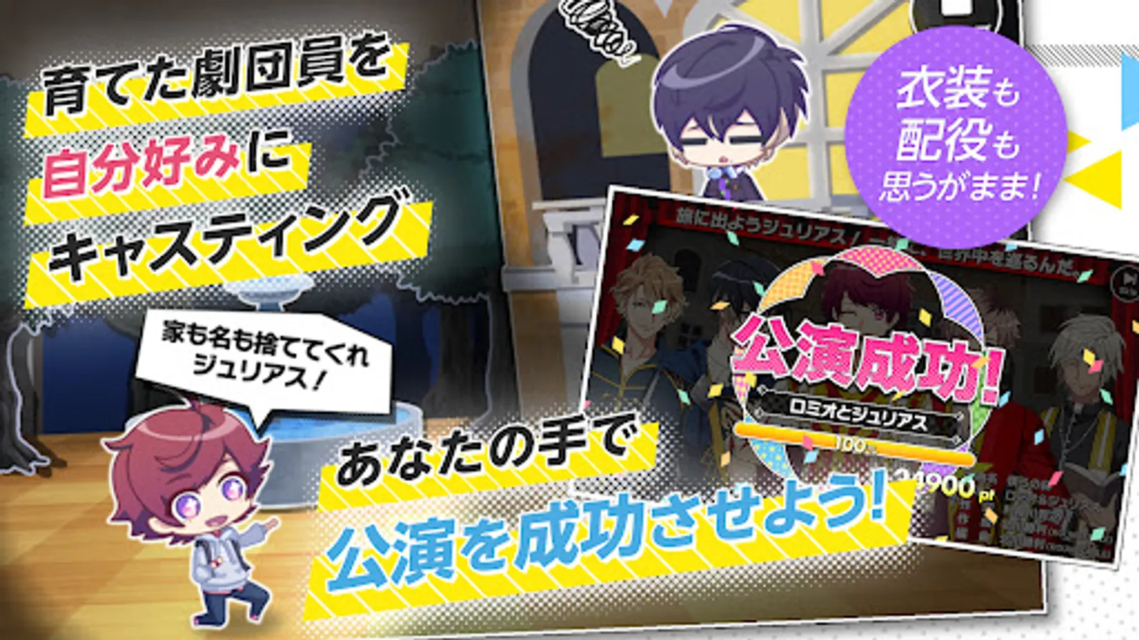 In the play part, cute chibi characters will perform the play according to your casting! The costumes and the cast are all up to you♪