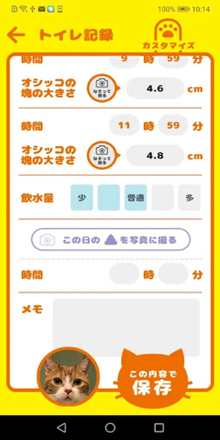 Veterinarian supervised cat's daily toilet (such as pee amount)