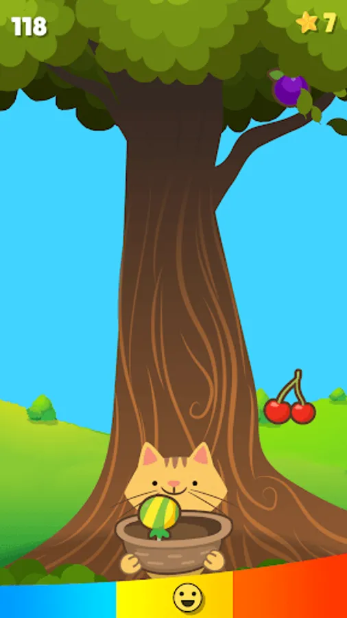 You can enjoy learning how to control the volume of your voice, which is necessary for the communication with others. When you speak at the mike on your phone, animals holding baskets move around to catch the sweets falling from the trees.