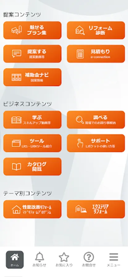 In addition, we have prepared a diagnostic menu that proposes the perfect remodeling plan for the customer according to the situation at the remodeling site, the customer's problems and requests. Let's propose the best remodeling for our customers!