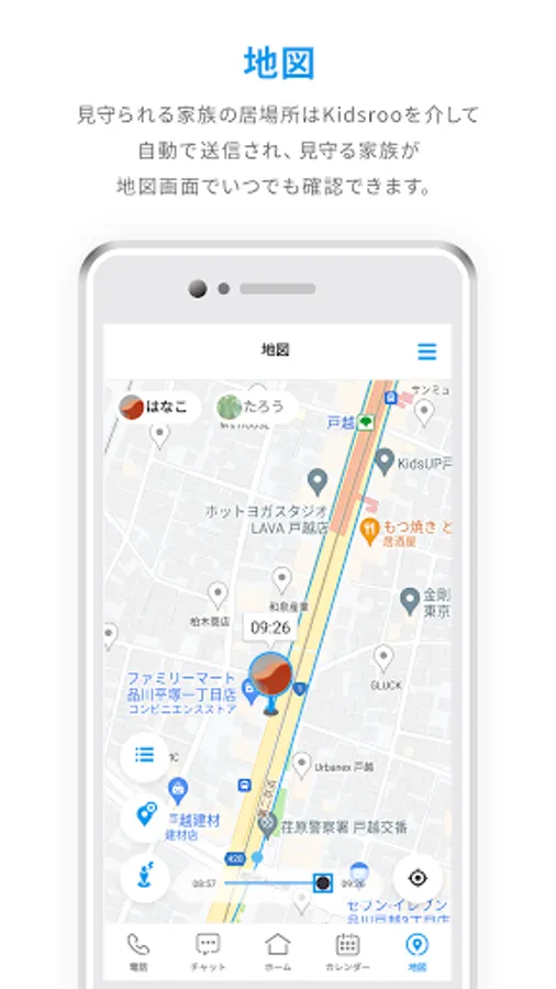 The location information of the family members being watched is automatically sent via Kidsroo, and the family members being watched can check the whereabouts of the family members being watched at any time.