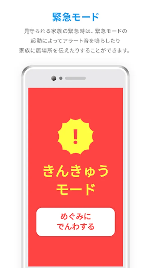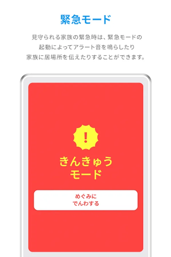 In the event of an emergency for the family being watched over, you can activate the emergency mode to sound an alert sound from the terminal and send an alert to the family watching over and information on the whereabouts of the family member being watched over.