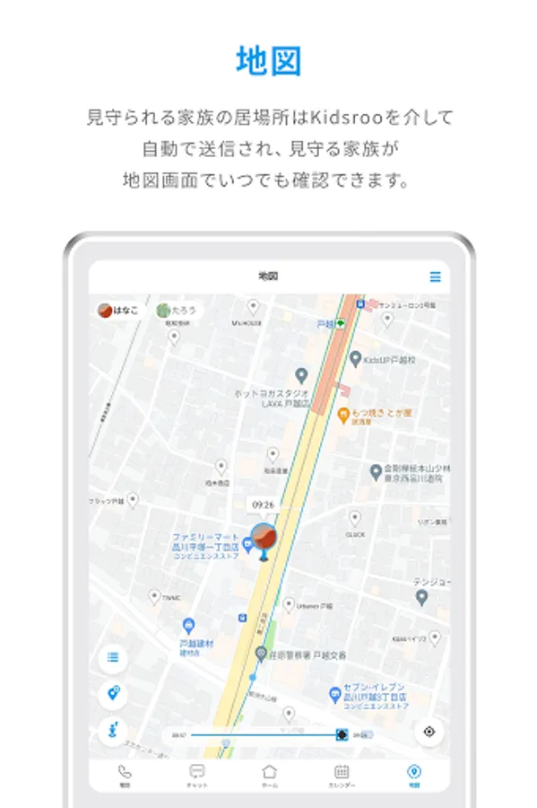 In addition, by setting the destination in advance, the family member being watched over can display the route to the destination on the map while looking at the map.