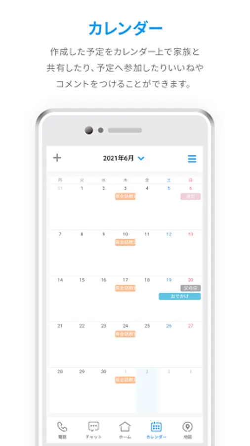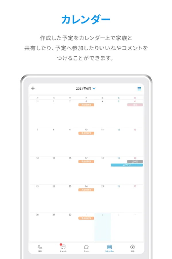 You can share the created schedule with your family on the calendar. You can like each schedule, post comments and images.