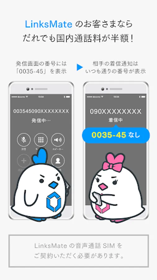・ For the use of this application, the “LinksMate Terms of Use”, “Basic / Important Matters”, “MatePhone Application Terms of Use”, “MatePhone Service / Notes on Unlimited Options for 10 Minutes” Will be.