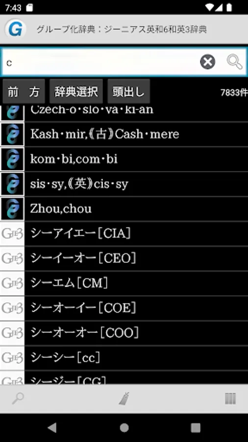 ・In the group dictionary search result list, you can jump to the beginning of each member's dictionary.