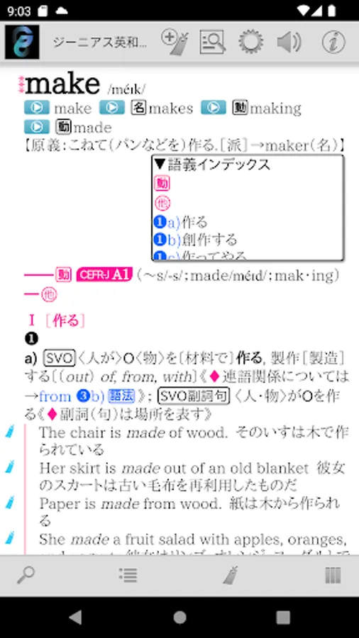 ・You can have the text of the dictionary entry read aloud by synthesized voice.