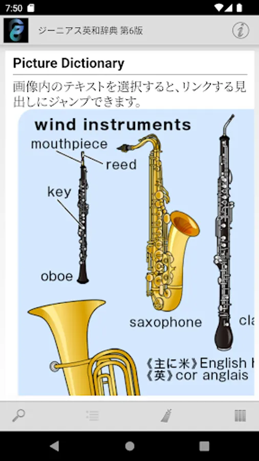 ・Illustration of familiar objects. Includes "Picture Dictionary" where you can enjoy learning the names of things by looking at them. By tapping the name/term in the illustration, you can jump to the corresponding terminology and read it. You can learn systematically from illustrations.