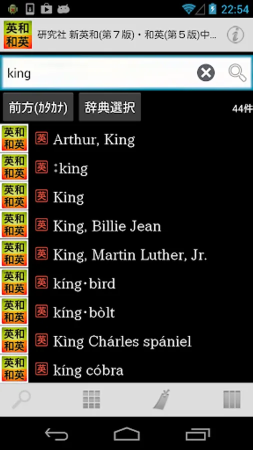 If you use hiragana and katakana as search keywords under these conditions, you can search both English-Japanese and Japanese-English dictionaries together.