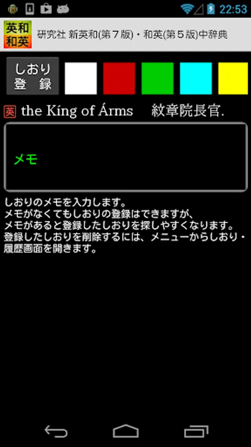 ・Bookmarks can be added to dictionary entries at any time.