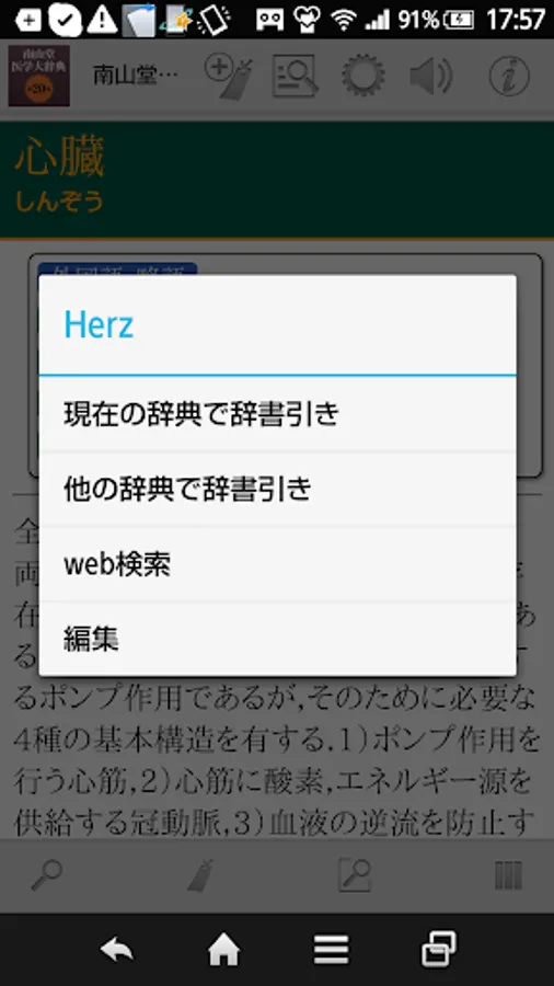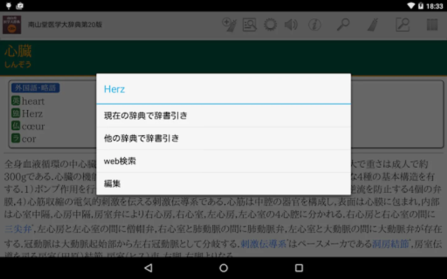 ・You can quickly search in another dictionary using the text of the displayed dictionary entry.