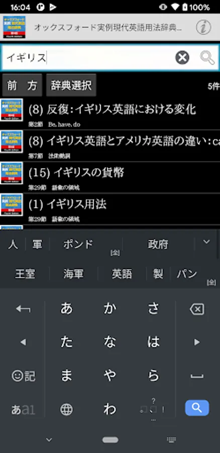 ・You can quickly search in another dictionary using the text of the displayed dictionary entry.