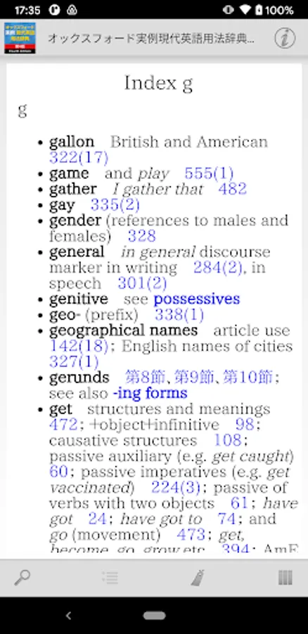 ・You can search the contents of the dictionary item you are reading now by "text search".