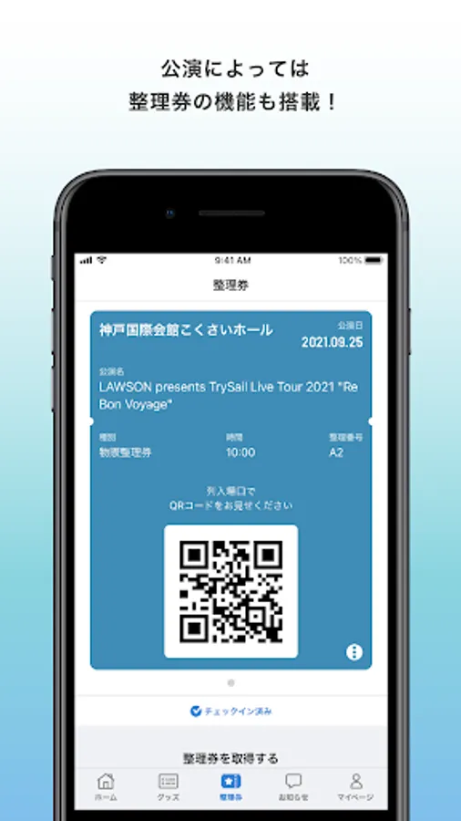 You can list the goods you want to purchase in advance at Sphere, TrySail, and each solo venue goods sale, and you can easily order by just showing the QR code screen at the cash register.