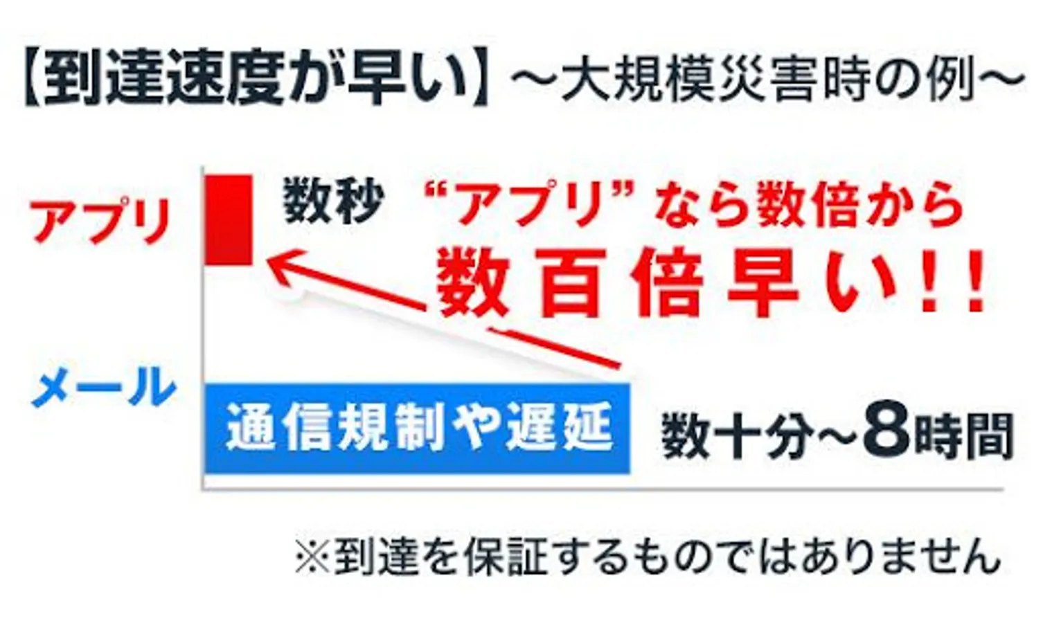 *In the event of an emergency such as a disaster, e-mails from mobile carriers may be congested and e-mails may arrive late. Push notifications are less prone to delays.