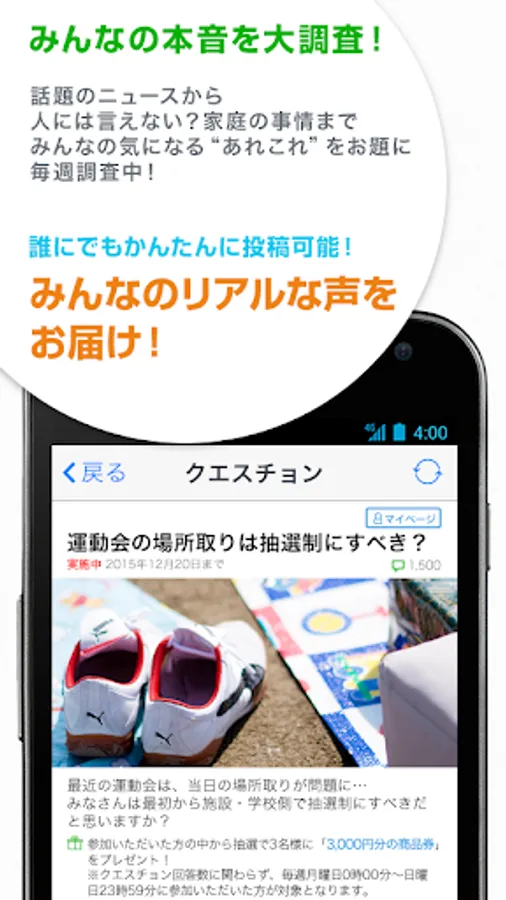 Even those who do not use town comi mail can post easily! This is a public opinion poll where you can listen to the real voices of all the moms and dads.