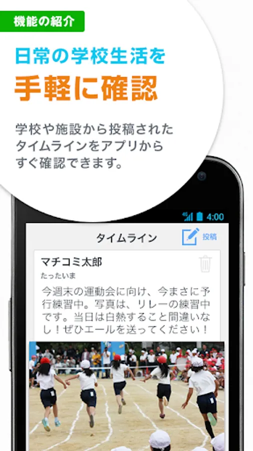 With the Machikomi app, you can immediately receive and check communications from schools and facilities.