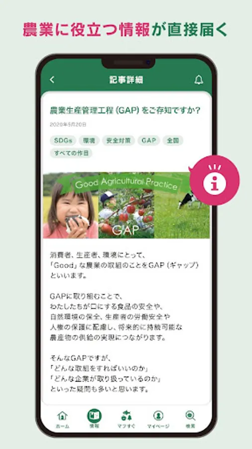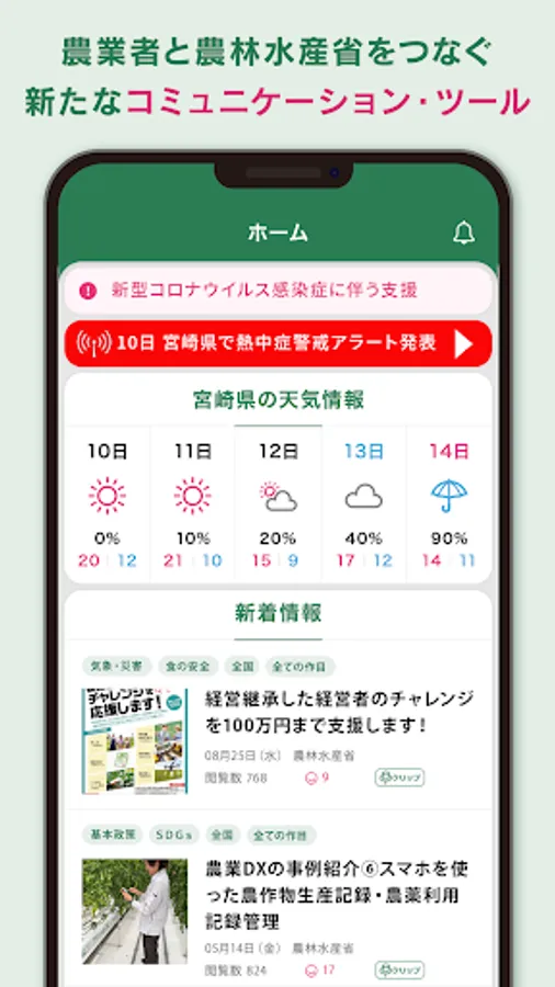 The Ministry of Agriculture, Forestry and Fisheries will directly deliver policy information and event information useful for agriculture to users' smartphones in the form of articles.