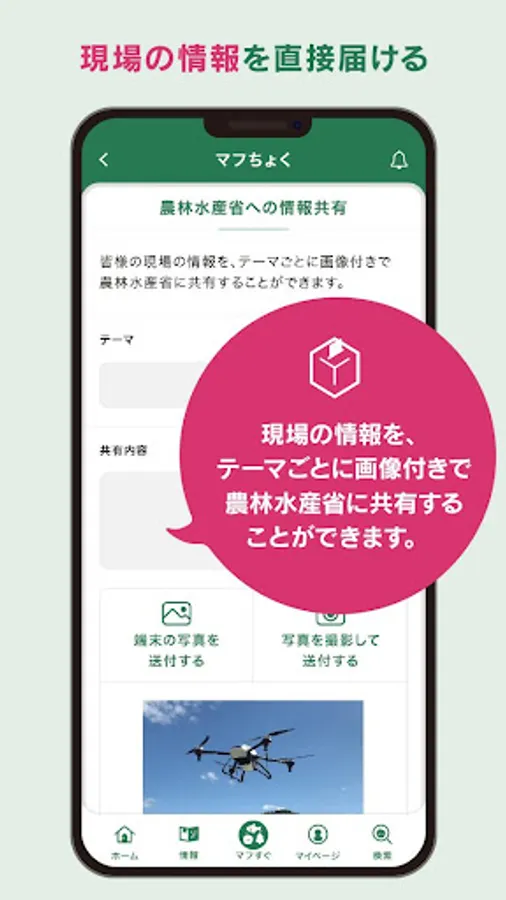 In addition, on-site information can be sent directly to the Ministry of Agriculture, Forestry and Fisheries.