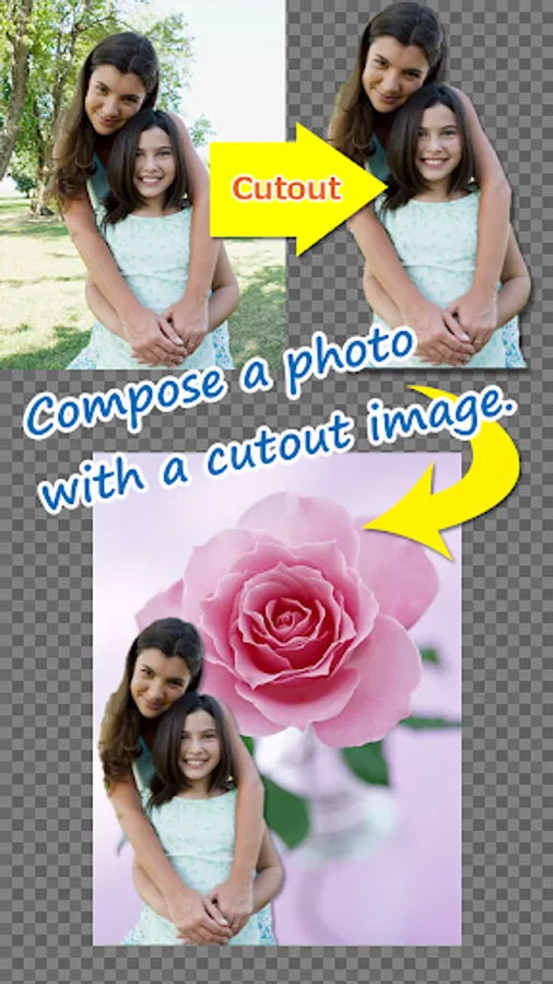 The "Edge Tracer" is an image editing app that automatically cuts out unwanted sections from photos and illustrations, makes the background behind the image transparent, and allows you to compose the cutout on other backgrounds.